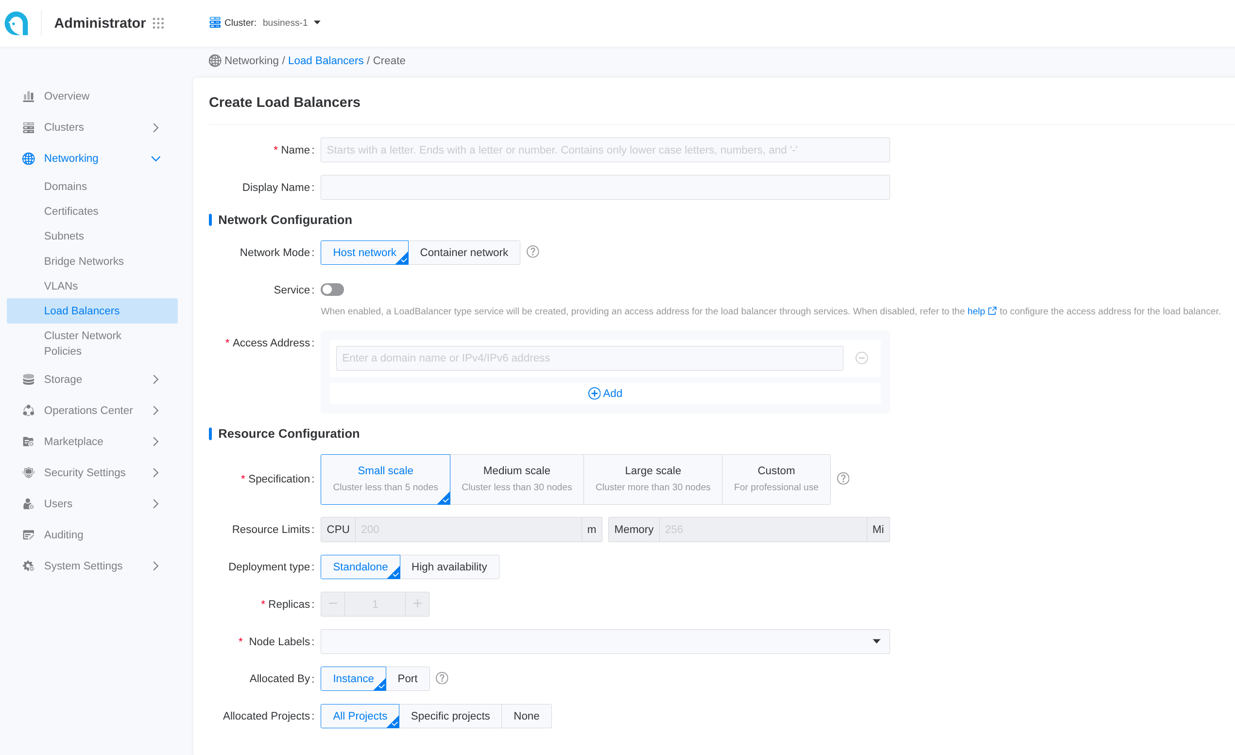 If the resource allocation method of the load balancer is Port, only administrators can delete the related listener ports in the Administrator view.