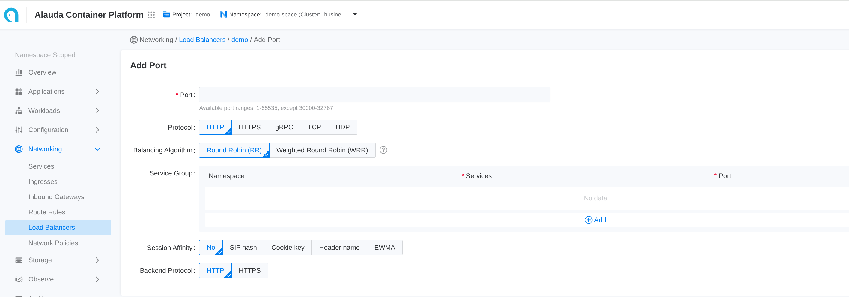 - When selecting the gRPC protocol, the backend protocol defaults to gRPC, which does not support session persistence.If a certificate is set for the gRPC protocol, the load balancer will unload the gRPC certificate and forward the unencrypted gRPC traffic to the backend service.